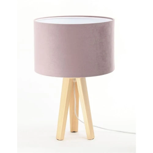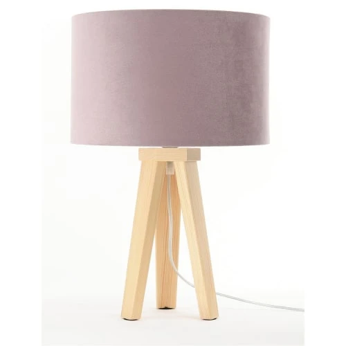 • Matière : Textile velours rose poudré sur un PVC blanc. Pied de lampe en bois de pin naturel.