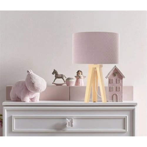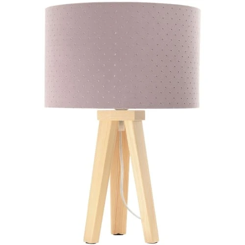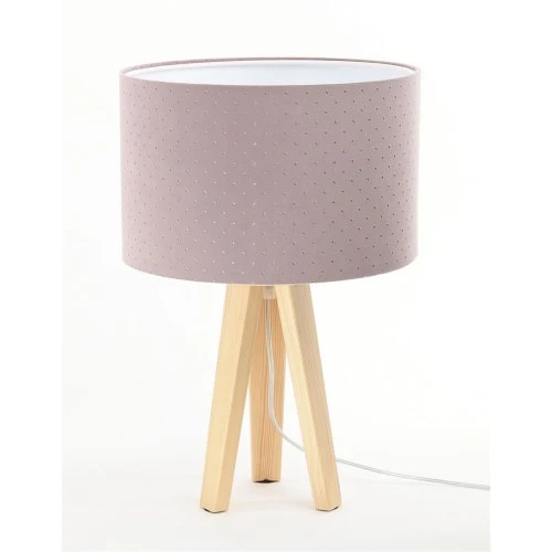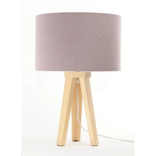 • Matière : Un tissu jasmin matelassé de couleur rose poudré sur un PVC blanc. Pied de lampe en bois de pin naturel.