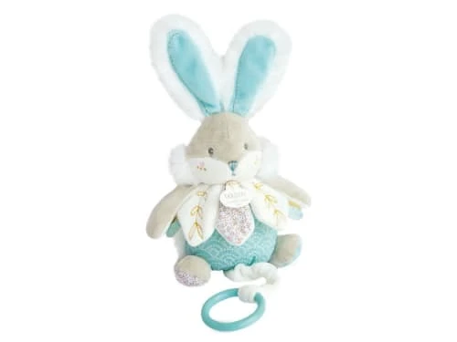 Chaque naissance est unique, Doudou et Compagnie a fait que Doudou le soit aussi.Ce doudou boite à musique Lapin de sucre est une petite de boule de poils toute doucequi accompagnera bébé dès sa naissance. Léger, facile à manipuler, il promet des moments de grande tendresse et de complicité partagés.