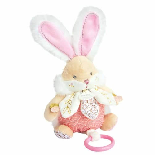 Chaque naissance est unique, Doudou et Compagnie a fait que Doudou le soit aussi.Ce doudou boite à musique Lapin de sucre est une petite de boule de poils toute doucequi accompagnera bébé dès sa naissance. Léger, facile à manipuler, il promet des moments de grande tendresse et de complicité partagés.