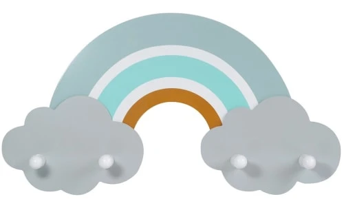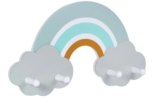 Le porte-manteau arc-en-ciel de Kindsgut apportera la petite touche finale à la décoration de la chambre de bébé. Avec ses couleurs pastelles il s’intégrera parfaitement dans votre intérieur tout en permettant de maintenir un peu d’ordre de manière stylée : ses 4 crochets sont assez grands, solides et d’une forme ergonomique pour accrocher et maintenir vestes, petit sac à dos, bijoux, foulards. Fixé à la hauteur de l’enfant, il l’invite à accrocher lui-même ses vêtements et à accomplir ainsi ses premiers pas vers l’autonomie