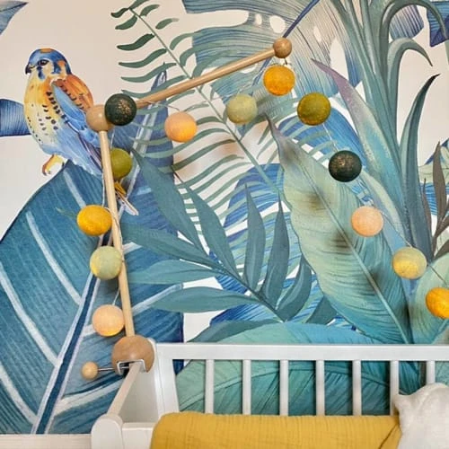 Maisons Du Monde Suspensions Enfant Applique En Rotin Et Tissu Rose Décoré De Pompons écrus Et Roses