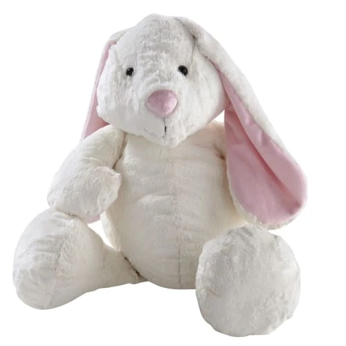 Ce grand lapin blanc et rose ne demande qu’à être câliné ! Doté de longues oreilles roses, cette peluche lapin enveloppera votre enfant de tendresse et de douceur. Adorable avec son air bienveillant, ce lapin blanc accompagnera les petites princesses aux pays des rêves.