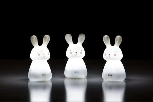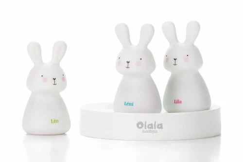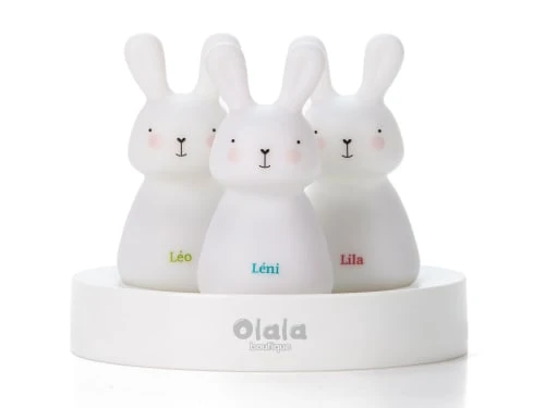 Veilleuse trio de lapins (Léo, Léni et Lila), veilleuses mobiles à transporter partout dans la maison de la marque Olala.