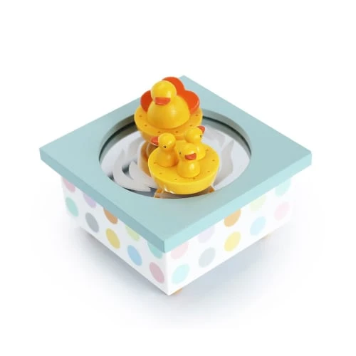 Dimensions boite à musique : 11.5 x 11.5 x 7 cm. Un objet décoratif en bois de la marque Trousselier. Réf. S95001.