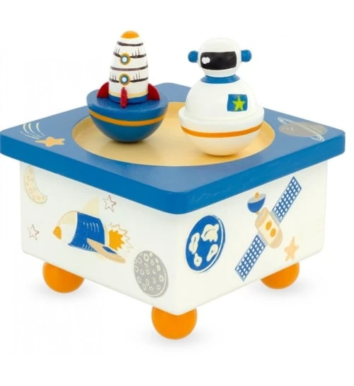 Une jolie petite boite à musique en bois de 10 x 10 cm.Mélodie : Fly me to the moon (Bart Howard).